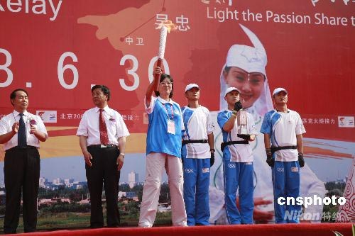 6月30日,奥运火炬在宁夏吴忠传递。中新社发 芦河 摄