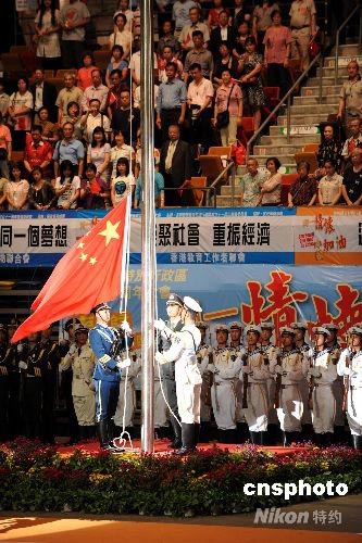 曾荫权出席升旗礼庆回归:全力办好奥运马术赛