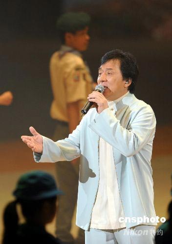 著名影星成龙在庆香港回归十一周年文艺汇演上高唱“真心英雄”。中新社发 洪少葵 摄