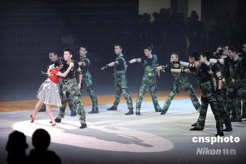 解放军驻港部队在庆香港回归祖国11周年文艺汇演上演出抗震救灾节目。中新社发 洪少葵 摄