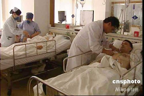 7月1日上午9时许,一名外地来沪歹徒持刀闯入上海闸北公安分局,连续捅伤多名民警和一名保安,随即被民警当场擒获。上海闸北公安分局受伤民警和保安被送往长征医院和北站医院抢救。目前,已有五名受伤民警牺牲,其他伤员正在全力救治中。中新社发 宣克炅 摄