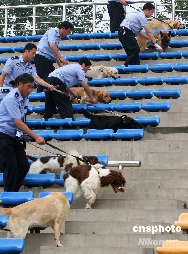 广东二十八只搜爆警犬赴京参加奥运安保工作
