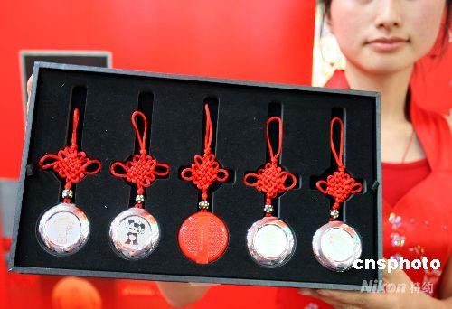 图为奥运特许产品联想奥运吉祥物电子纪念章。中新社发 任海霞 摄