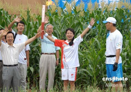 奥运火炬陕西杨凌传递开始 75岁农业专家跑首棒