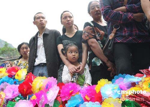 图为理县众多群众纷纷前来为烈士送行。中新社发 黄荣 摄