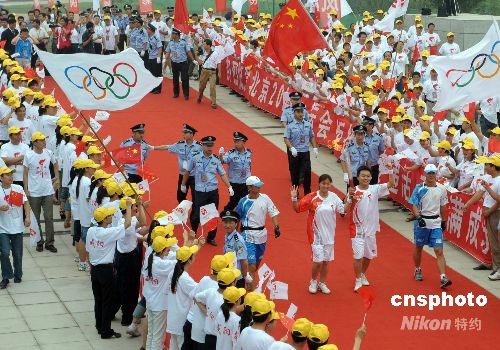 奥运火炬咸阳传递开始 射击射箭名将共同跑首棒