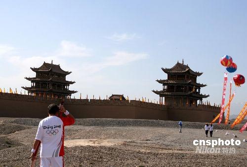 图:奥运火炬在嘉峪关传递