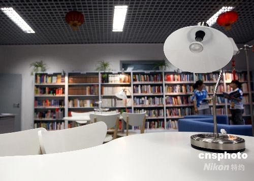 7月8日,北京2008年奥运会主新闻中心(MPC)正式开放,内部的中小型图书馆可让疲惫的记者放松一下。中新社发 杜洋 摄