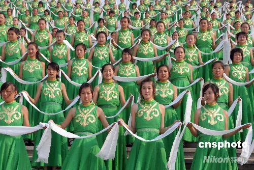 图:内蒙少女着盛装迎接奥运火炬