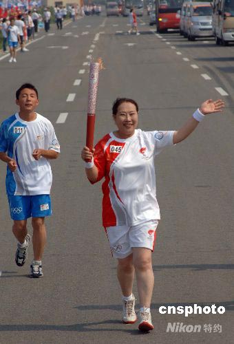 图:巴特尔呼和浩特传递奥运火炬首棒