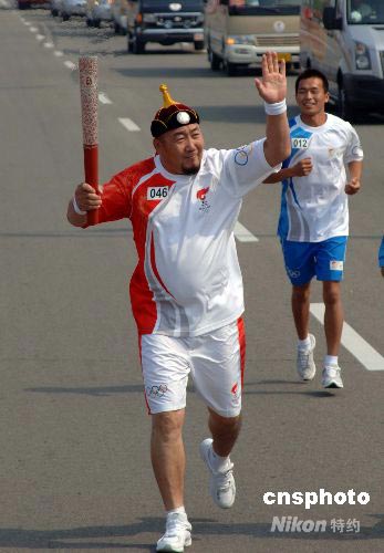 图:巴特尔呼和浩特传递奥运火炬首棒