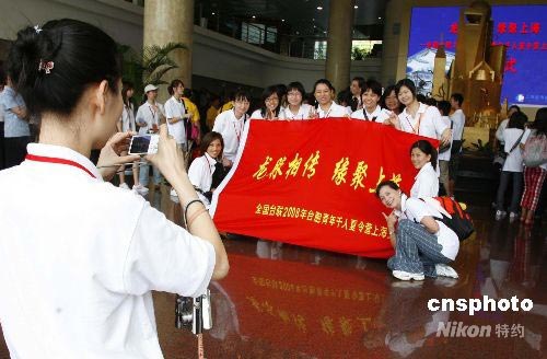 7月11日,“龙脉相传缘聚上海——台胞青年夏令营”在上海开营。来自台湾政治大学、成功大学、海洋大学、佛光人文学院的同学,以及在沪台生、台籍青年等百余人参加,并在上海城市规划馆竞相合影。中新社发 潘索菲 摄