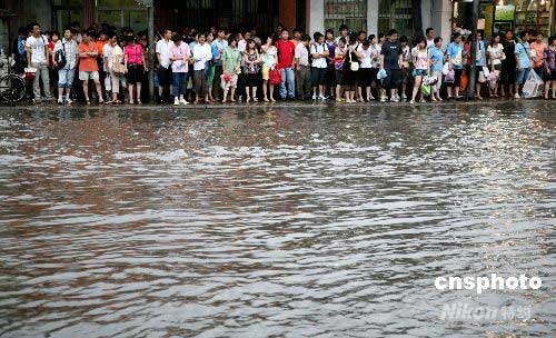7月11日,南京遭受暴雨袭击,市区多处道路积水,由于时值周末,又正值下上班高峰时间,给市民出行带来不便。另悉,当地气象台当日16时许先后发布暴雨橙色预警信号和雷电红色预警信号,预报未来3小时内南京市降雨量将达50毫米以上,并伴有强雷电。中新社发 钟山 摄