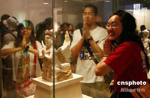 7月14日,台湾学生“中华文化寻根夏令营”一行在大陆西北宁夏地区,参观考察“东方金字塔”西夏王陵。该夏令营的35位台湾学生均在上海中医药大学就读。中新社发 潘索菲 摄