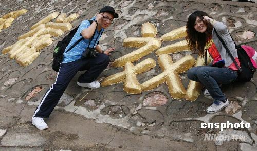 7月14日,台湾学生“中华文化寻根夏令营”一行在大陆西北宁夏地区参观考察“东方金字塔”西夏王陵,并对“似曾相识”的古西夏文字进行探究寻秘。中新社发 潘索菲 摄