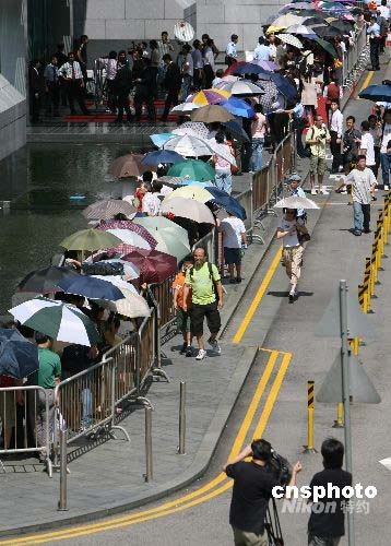数千香港市民排队领取奥运纪念钞票购物凭证(2)