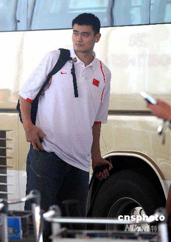 7月16日,中国男篮的“擎天拄”姚明随同全队抵达杭州参加2008斯坦科维奇洲际杯篮球赛。中新社发 任晨鸣 摄