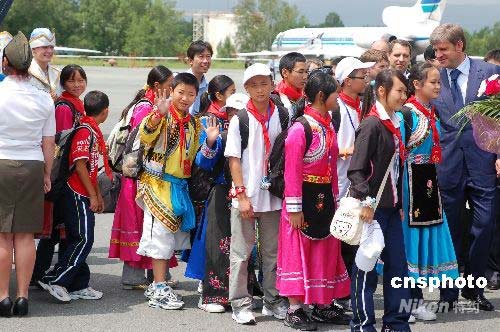 首批中国地震灾区学生抵俄疗养 受到俄隆重欢迎