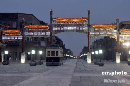 自2007年5月开始大规模修缮的前门大街 ,18日整治工作已接近尾声。“亮灯”后,充满“京味儿”的前门大街将整体亮相迎接八方宾客的到来。中新社发 王宇婷 摄