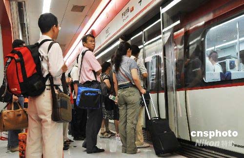 7月20日,由北京东直门公交枢纽通往首都机场T2、T3航站楼的机场快轨迎来开通后的第二天,由于当日启动奥运单双号限行措施,旅客人数明显增加。据悉,乘坐机场快轨16分钟即可从东直门抵达首都国际机场。中新社发 王宇婷 摄