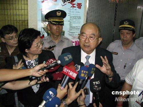 陈水扁曾公开指称雷学明等人涉嫌在“拉法叶舰军购案”中收受巨额回扣,雷学明等5人因此控告其诽谤。庭审后,雷学明(右)在其女雷倩(左)陪同下走出法庭,接受媒体访问。中新社发 徐长安 摄