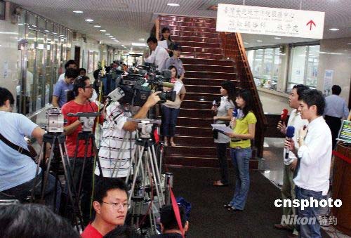 7月21日,台湾前海军中将雷学明等控告陈水扁等人诽谤案在台北地方法院开庭。这是是陈水扁卸任台湾领导人后首度至法院出庭,创下卸任领导人以被告出庭的首例。为此,台湾大批媒体在台北地方法院的两个入口摆开阵仗采访。中新社发 黄少华 摄