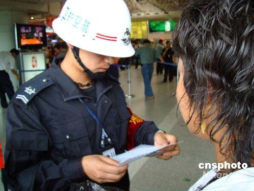 七月二十一日上午,昆明市内发生两起公交车爆炸案,导致二人死亡,十四人受伤。目前云南省交通、铁路、民航公安机关加强了相关安全防范措施。边防部队已部署各边境口岸、通道的管控工作,加强对嫌疑人员盘查检查,力争发现线索查获犯罪嫌疑人,防止犯罪嫌疑人逃往境外。图为昆明机场安保人员正在执行安全检查工作。中新社发 杨洋 摄