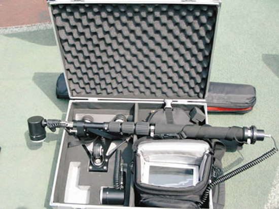 这种视频探测器是于去年年底引进的。它有广角镜头,拍摄范围比较广,还可用于近距离观察。检查镜探入车底时也运动自如,不会被损坏。探杆可以拉至所需要的长度,对人工观察不便的“犄角旮旯”进行清晰观察。视频探测器表面上很不起眼:装置设备的箱子,还不如一般的旅行包大。但它有一个能伸缩的棍状探杆,能“看到”难以观察的“死角地带”,尤其在黑暗中,它还能自动转换为红外摄像头,显示黑白图像进行搜索。