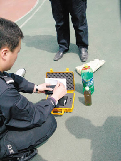 这种手持流体探测仪,是一种独特的革新产品,它主要被用来对密封容器内的易燃易爆液体进行无接触的探测。它能快速安全地检查各种不同材质容器内的液体,而且不需要破坏容器上的封印或者标签。探测仪就放在一个手提包大小的黄箱内。在现场,一名特警拿出感应器,分别对饮料和汽油进行测验。当感应器贴近饮料,指示灯为绿色,说明容器内的液体为非可燃性;贴近汽油,指示灯为红色,说明液体具有危险性。“这种探测器灵敏度高,能实时显示探测结果。可以说,是液体危险品的克星”。