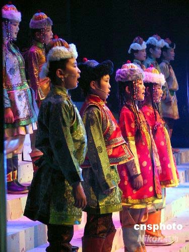 二十三日晚,来自呼伦贝尔的二十九个内蒙古孩子登上台北“国父纪念馆”的大礼堂,为宝岛台湾的观众朋友带来了大草原的天籁之音。中新社发 徐长安 摄
