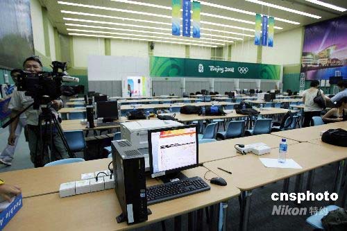 七月二十六日,位于沙田奥运马术比赛主赛场的新闻媒体中心启用,设备齐全的场馆提供新闻发布、无线网络通讯、赛程成绩公布等,方便各路媒体工作。中新社发 洪少葵 摄