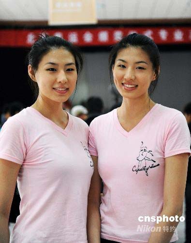 图:奥运颁奖礼仪小姐中的孪生姐妹花