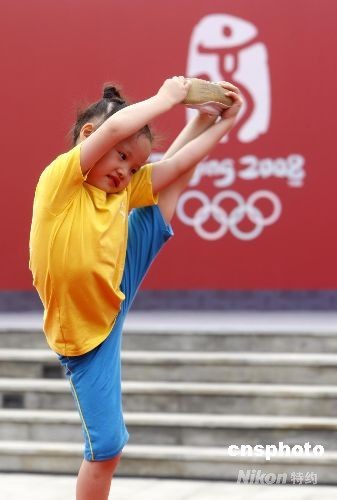 7月27日,北京奥运村正式开村。一名参加表演的女孩在开村仪式前做准备活动。 中新社发 杜洋 摄