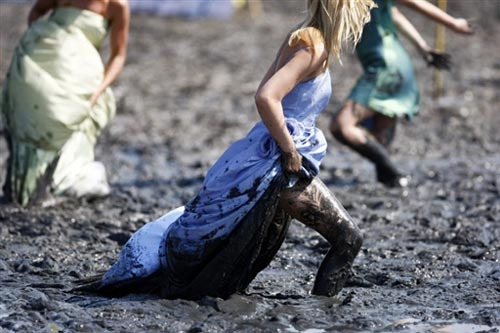 泥地足球疯狂上演 "女球员"展现另类性感(2)