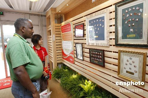 7月29日,北京奥运村里的纪念品交换中心吸引运动员,成为他们休闲的一个好去处。 中新社发 杜洋 摄