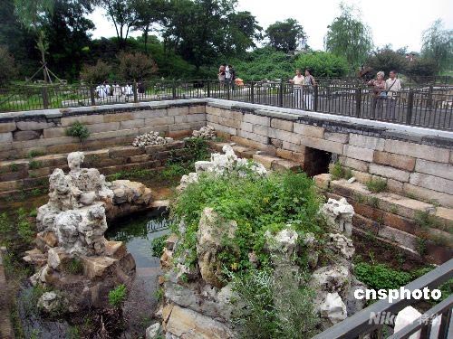 7月29日,中国“皇家禁苑”圆明园的核心区在建园三百多年后首次向游客开放。其中,圆明园四十景之一“坦坦荡荡”首次亮相引起关注。这是当年皇帝饲养、嬉玩金鱼的巨型鱼池,地基、假山、池藻等均保存完好。这也是中国文物考古工作者近年来整理圆明园遗址文物时的一项最新发掘成果。中新社发 许晓青 摄