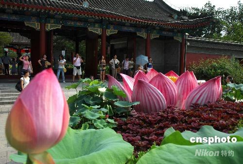 7月29日,北京圆明园第二十二届荷花展扮靓北京城,喜迎奥运盛会。中新社发 张双双 摄