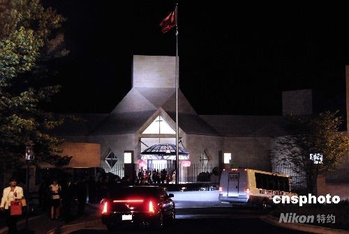 中国驻美国大使馆新馆当地时间七月二十九日在华盛顿开馆,由著名华裔建筑设计师贝聿铭设计,中国建筑总公司、上海建工集团、中国中元国际工作公司、中国日林建设集团承建的驻美国大使馆新馆,时尚、大气。图为开馆当晚的夜景。中新社发 邱江波 摄