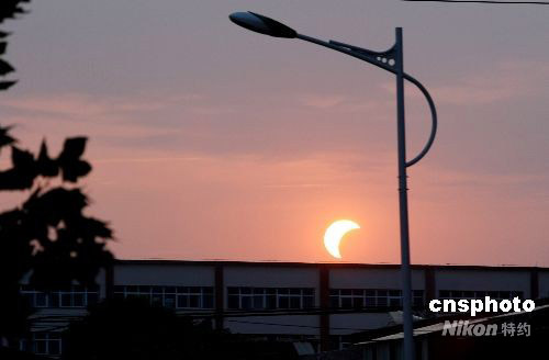 8月1日18时58分,河南许昌市出现日食。 中新社发 张燕军 摄