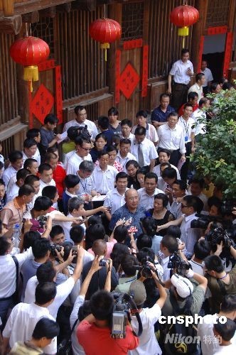 图:吴伯雄游福建土楼 众媒体追随采访(4)
