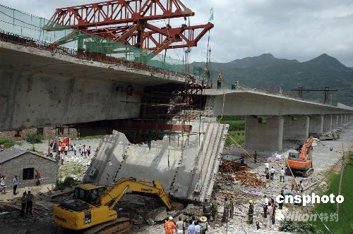 8月21日,甬台温铁路黄岩金寺堂特大桥发生坍塌,2死2伤。当日上午6时10分左右,甬台温铁路浙江黄岩金寺堂特大桥(与104国道立交处)工程项目38号墩0号块梁板发生坍塌事故,4名施工人员被埋。事故发生后,当地政府迅速组织公安、消防全力抢救。目前,2人被240多吨的梁板压死,另外2人被救出,无生命危险。事故原因在调查中。 [1] [2] [下一页]