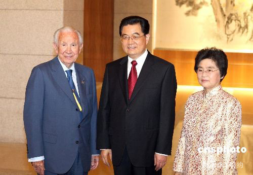 胡锦涛夫妇欢迎出席奥运会闭幕式的萨马兰奇