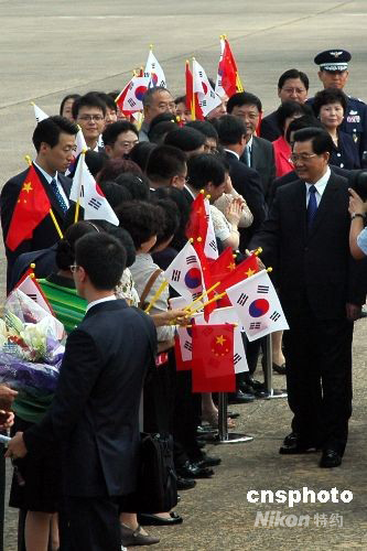 图:胡锦涛抵达首尔开始访问韩国