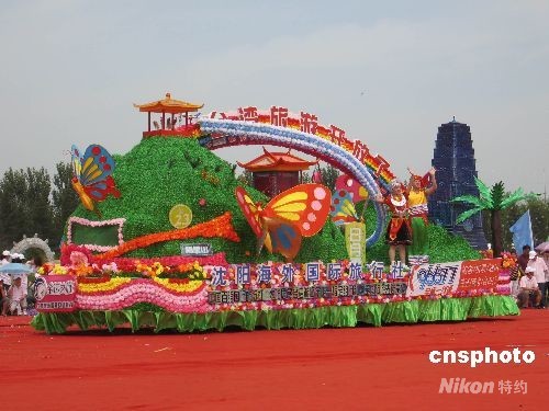 8月30日,由国家旅游局、辽宁省政府主办的2008中国沈阳国际旅游节开幕,开幕式上举办了国内外花车巡游。中新社发 沈殿成 摄