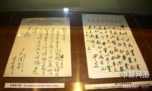 台湾两蒋园区同台展出毛泽东蒋介石手迹(图)