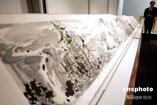 图:中国书画拍卖会预展吴冠中《长江万里图》