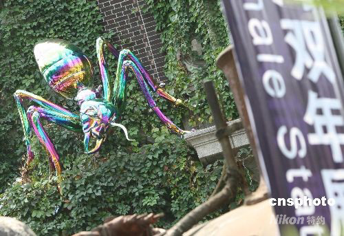 9月9日,一只巨型“蚂蚁”爬上了上海美术馆的钟楼,引起了不少路人的好奇。 这只“蚂蚁”是艺术家陈志光参加2008上海双年展的作品,他以“蚂蚁搬家”来演绎本届双年展有关城乡移民的主题。中新社发 汤彦俊 摄