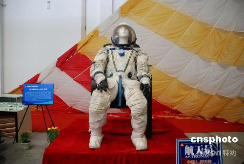 图为价值五百万元的宇航服实物展品首次在中国国内公众面前亮相。