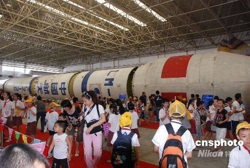 图为许多家长带着孩子来参观航天展。中新社发 周利朔 摄