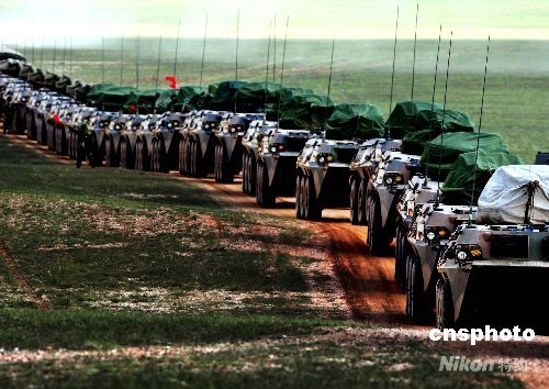 参加“砺兵--2008”演练的解放军济南军区某机械化步兵旅,9月13日至9月17日进行摩托化开进、阵地火速转移、山地集结、假想目标攻击训练。中新社发 宋吉河 摄